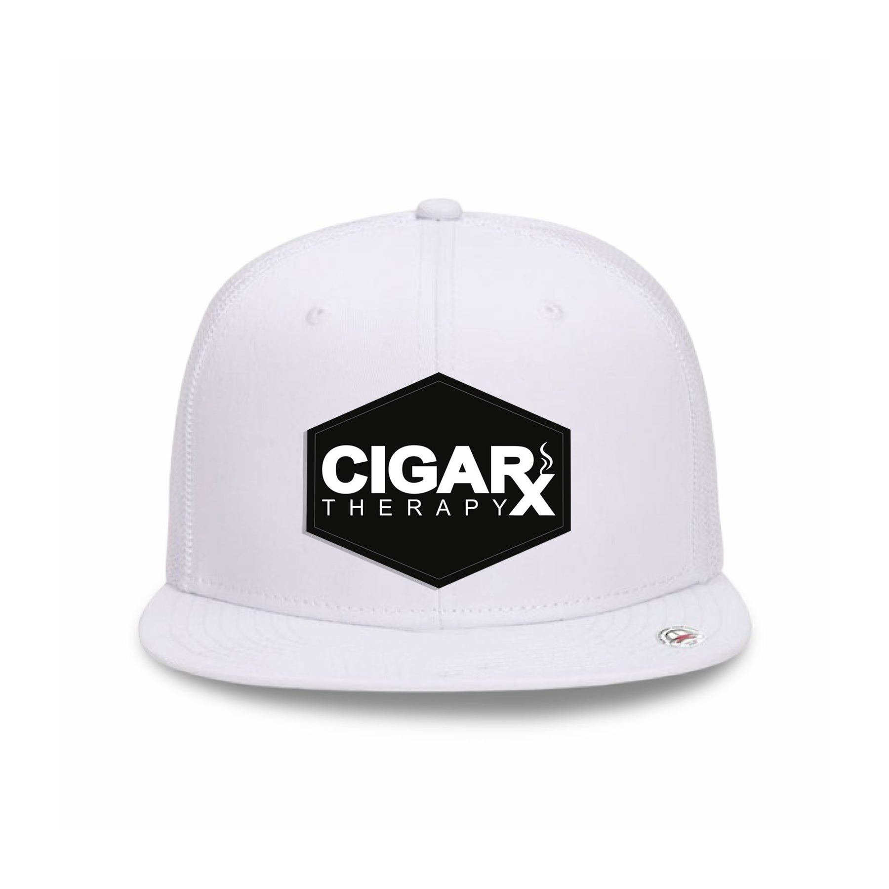 White Flat Trucker with Black Classic Patch