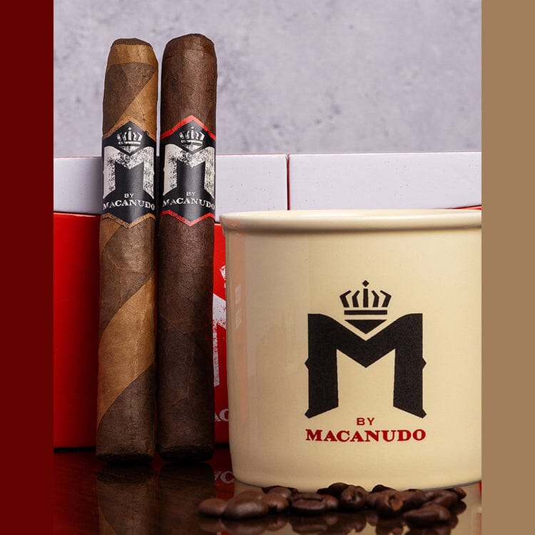 The M by Macanudo Coffee & Espresso Toro Holiday Gift Set features two fabulous flavor blends for lovers of the bean and leaf. These infused smokes offer a serious taste that goes way beyond what’s possible with natural tobacco alone.