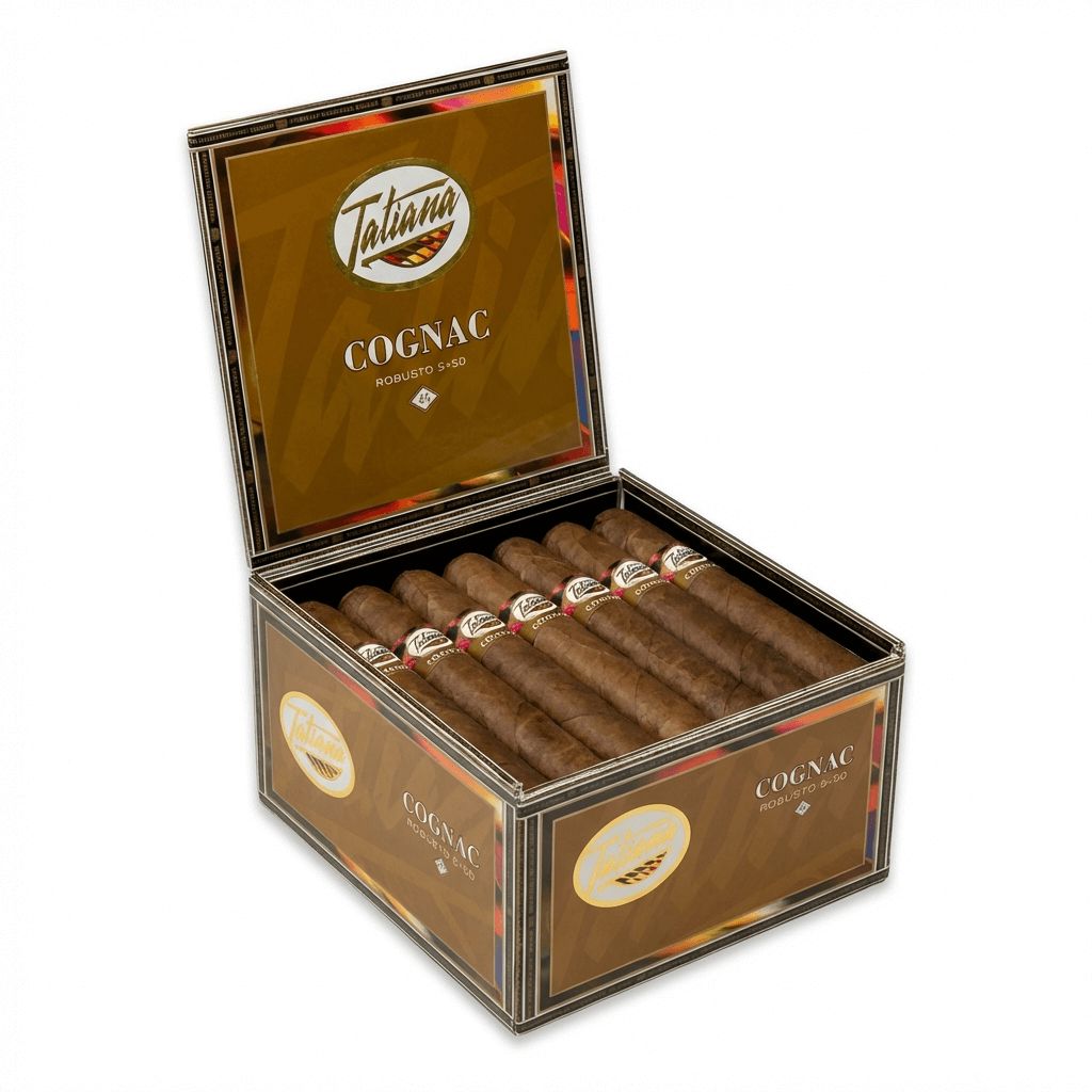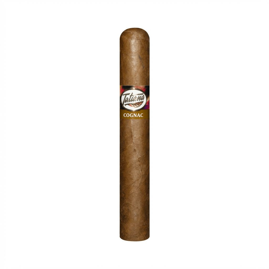 This Tatiana Robusto Cognac cigar is made in the Dominican Republic. Outside, you'll find an Indonesian wrapper. Inside, the binder and the filler are Dominican. The Tatiana Classic Caribbean Chill is a Mild Bodied Robusto Shaped cigar with a length of 5.00 and a ring gauge of 50.